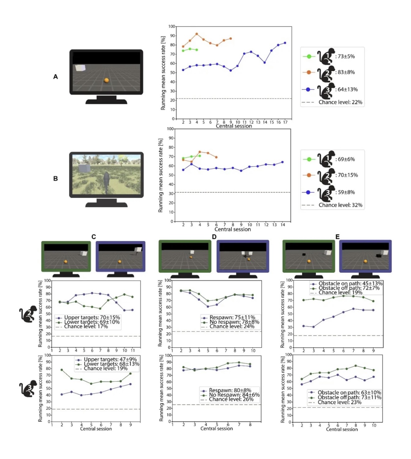 在一项测试新型植入式脑机接口的研究中,研究团队发现,猴子仅依靠大脑信号、无需做出任何明显肢体动作,就能精准控制三维虚拟现实环境中的运动;在试验过程中,它们甚至展现出清晰的学习能力,表现持续提升。团队还发现,相较于初级运动皮层,运动前区(腹侧与背侧)能为导航控制提供更有效的信号。该系统可在不同任务与环境中通用,无需重新训练,泛化能力优异。这项上周发表于《科学进展》的研究,标志着向可在实验室环境外使用的实用型脑机接口迈出了重要一步。