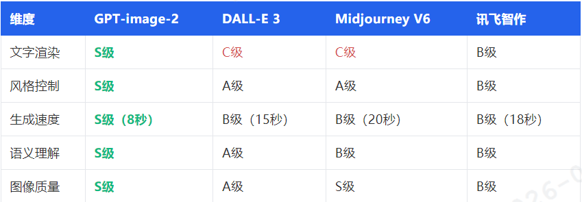 2026 年 4 月 21 日,OpenAI 低调推出新一代多模态图像生成模型 GPT‑image‑2,作为 DALL‑E 系列重大升级,实现原生多模态融合,在语义理解、风格一致性、文字渲染、物理真实性等核心指标全面超越主流竞品。其文字渲染准确率达 94.6%,解决行业长期痛点,生成速度仅 8 秒,可精准匹配品牌 VI、艺术家风格与商用场景需求。