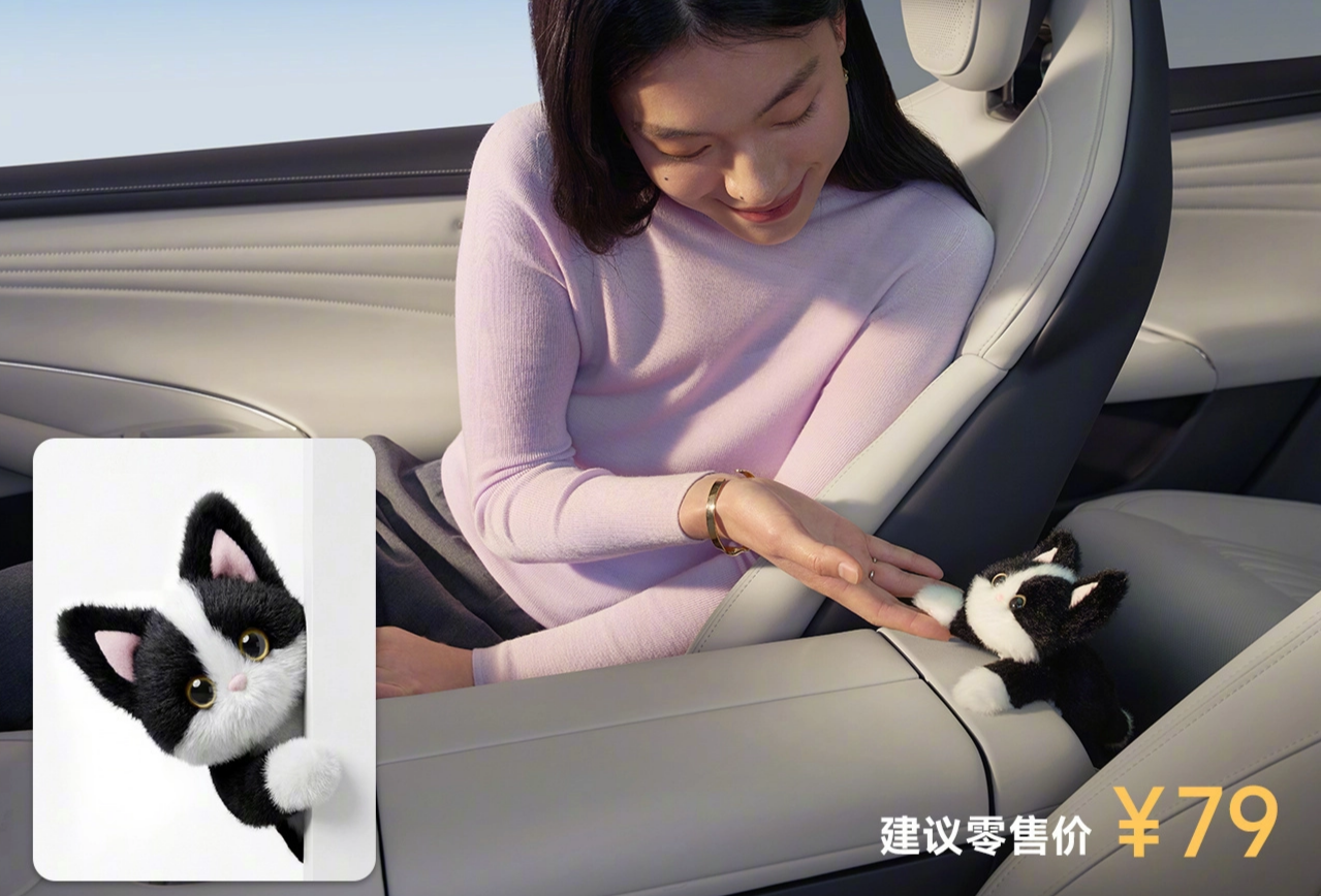 小米汽车在新一代 SU7 上市期间,同步推出一款定价 79 元的磁吸NFC毛绒玩偶(含猫咪、水獭两款),这款周边配件热度远超车型本身,首发当日即售罄,雷军直言其是“抢得最快”的爆款配件。该玩偶核心亮点的是内置 NFC 芯片,用户只需将其贴在车内任意磁吸点,车机系统便会自动识别,触发专属萌宠主题、动态动画、定制软萌音效,同时联动车内氛围灯变色,以“电子宠物”的轻量形式,为用户打造沉浸式车内互动体验。小米精准捕捉当代年轻人的爱宠情绪与情感陪伴需求,打破汽车仅作为出行工具的固有定位,让通勤场景更具温度,也因此引发养宠人群与车主的疯抢热潮。
