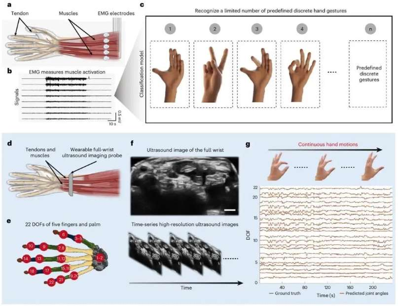 麻省理工学院工程师开发了一种可穿戴超声腕带,能够实时追踪手部动作。该设备通过对手腕肌肉、肌腱和韧带进行超声成像,并利用人工智能算法将图像转换为手指和手掌的位置信息,延迟小于 120 毫秒。研究团队展示了该技术在虚拟现实和机械手控制中的应用潜力,认为其可提供更直观、连续的手部追踪方案,克服现有摄像头、传感器手套等技术的局限性。团队计划进一步微型化硬件并优化算法,以实现更广泛的应用。